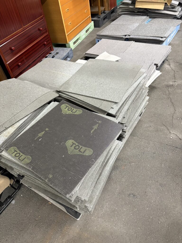 床のタイルカーペットを100円から販売しています。最近こういった品物もほとんど倍の値段になってしまいましたね。結局海外から入ってくるものがほとんどなので、円安の影響で、それだけで値段が上がってるのと、世界的な資源高騰の影響でどんどん金額が上がっていっています。