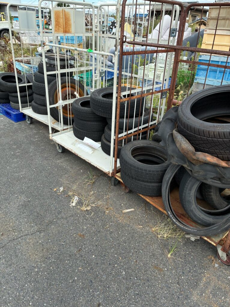 前にも話したことがありますが、以前から山賊村では中古タイヤを持ち帰る人たちがいるので、物によったら販売したりもしてましたが、このたび無料でお持ち帰りいただくことになりました